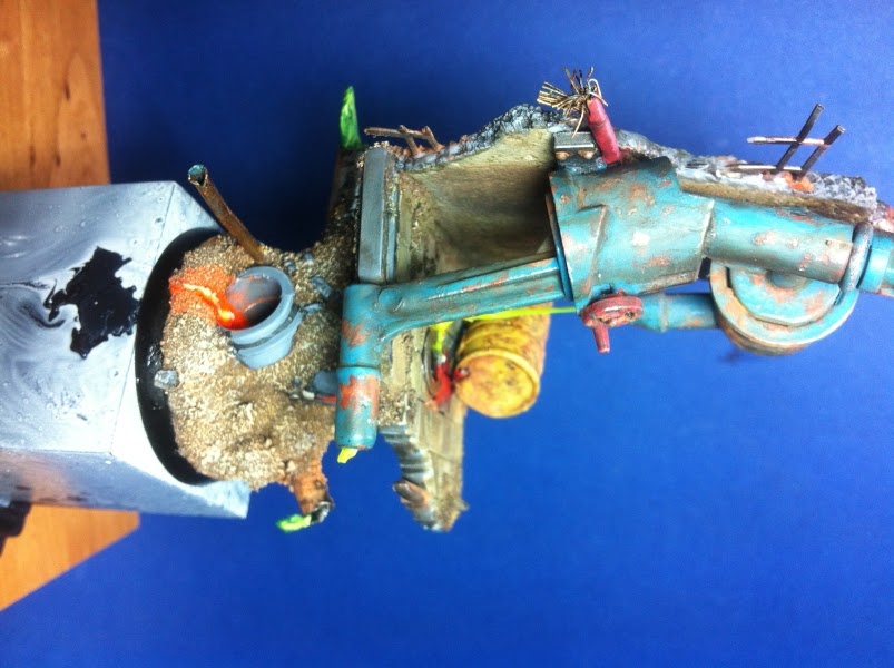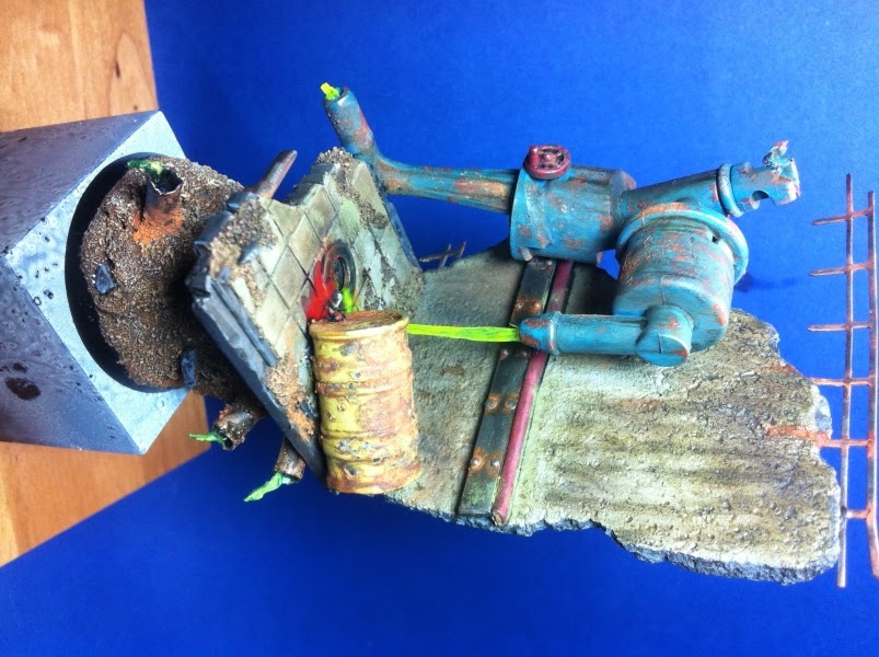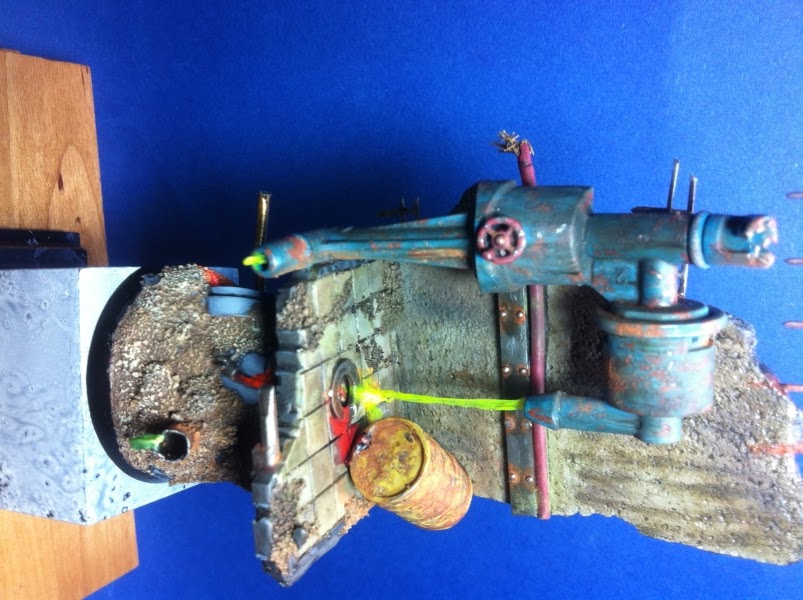 THEMA: Alte Chemiefabrik mit ausgelaufenen Chamikalien, Rohren und einem Wandstück.
