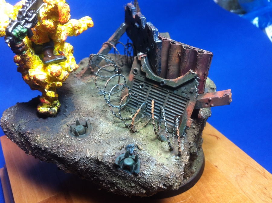 2. Eine Barrikade auf der eine Miniatur platz findet.
