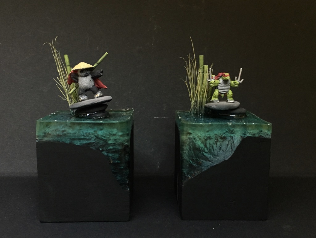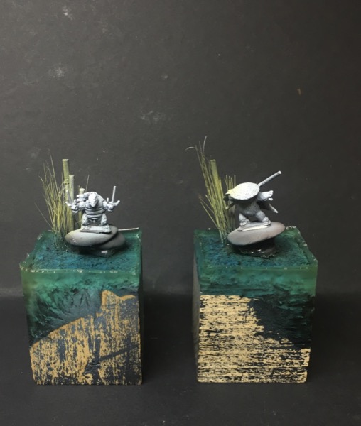 Miniaturen für Kinder zu finden, die irgendwie einen gewissen Witz und Charme haben ist gar nicht so leicht. Ich habe dann doch welche gefunden, um die es am Ende auch nicht schade wäre, wenn sie doch der Spielwut zum Opfer fielen. Die jetzt einfach irgendwie auf ne Base zu kleben und anzupinseln, war mir dann doch zu einfach und so haben sie einen Sockel spendiert bekommen und verbringen jetzt einen Tag am See.