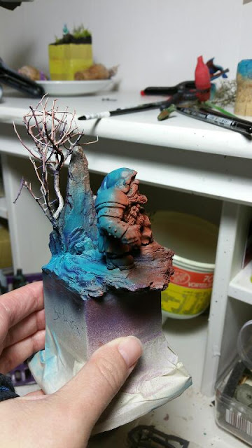 Eigentlich hatte ich geplant, den auf der SCM zu beginnen. Leider ist die für mich flachgefallen - aber ich habe beschlossen meinen Unmut nicht am Zwerg auszulassen und daher hat er heute schonmal probehalber auf seiner zukünftigen Base Platz genommen. Ich denke es wird so Richtung "erster Schnee im Gebirge" oder sowas gehen. So viele Worte, nicht viel passiert. Das ist dier aktuelle Stand.