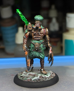 Hey Leute. Vor einiger Zeit hatte ich ja eine Spielplatte gebaut, da wir hier ein kleines Scharmützel im Spiel Eden starten wollen. Der ganze Tisch nutzt aber nichts ohne Figuren. Also fing ich neulich an, meine Gang zusammen zu bauen. Ich habe mich für die Fraktion der Askari entschieden. Ich habe seit ca. acht Jahren keine Spielfiguren mehr gebaut und bemalt. Was soll ich sagen - es war toll mal wieder etwas ohne Druck für einen Wettbewerb zu bauen - eine Figur, ein halber Nachmittag - sehr entspannend. Zum Vorgehen: zuerst wurde die Gang normal mit 2 Farben grundiert. Danach wurden die Grundfarben mit der Airbrush aufgetragen. Nun hat man ein Ergbenis, welches man schonn die Schlacht führen kann. Krieger Nummer 1 hat weitere 2-3 Stunden verschluckt und er war fertig. Bilder aus der Softbox gibt es, wenn alle fertig sind.